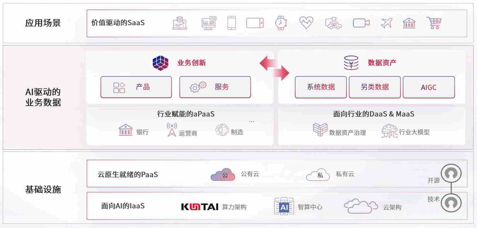 数字时代,,,,围绕企业数字化转型的关键要素,,,,Z6尊龙时凯数码开创性的提出数云融合战略和技术体系框架,,,,着力在云原生、、、数字原生、、AI原生和信创产业上架构产品和服务能力,,,为处在不同数字化转型阶段的快消零售、、汽车、、金融、、、医疗、、政企、、、教育、、运营商等行业客户提供泛在的敏捷IT能力和融合的数据驱动能力,,构建跨界融合创新的数字业务场景和新业务模式,,,助力企业级客户建立面向未来的核心能力和竞争优势,,,,全面推动社会的数字化、、、智能化转型升级。。。。